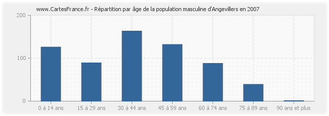 Répartition de la population masculine d'Angevillers par âge en 2007 :