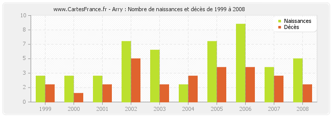 La population d'Arry était de 463 habitants en 2007, 407 habitants en 1999, 350 habitants en 1990, 358 habitants en 1982, 304 habitants en 1975 et 324 habitants en 1968.