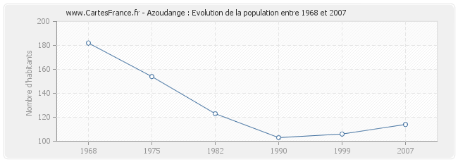 La population d'Azoudange était de 114 habitants en 2007, 106 habitants en 1999, 103 habitants en 1990, 123 habitants en 1982, 154 habitants en 1975 et 182 habitants en 1968.