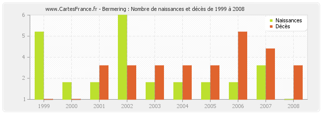 Bermering : évolution des naissances et décès de 1968 à 2007