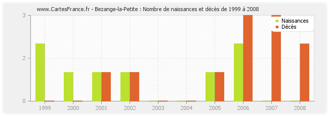 - Bezange-la-Petite en 2007 : 0 naissances et 3 décès
