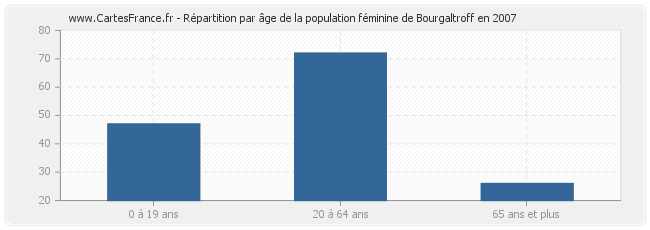 - Femmes de 20 à 64 ans habitant Bourgaltroff : 72