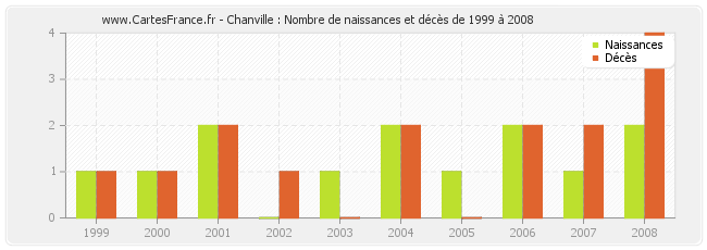 - Chanville en 2008 : 2 naissances et 4 décès