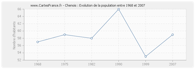 - Population de Chenois en 2007 : 59 habitants