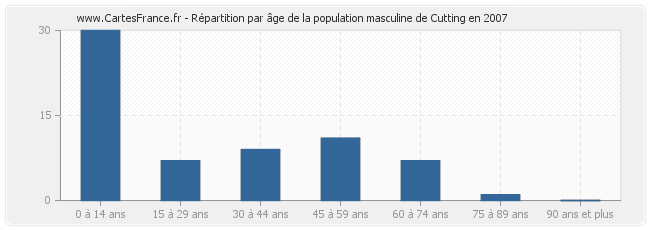 - Hommes de 0 à 14 ans habitant Cutting : 30