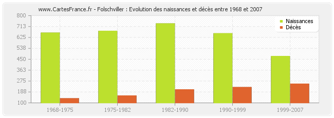 Folschviller : évolution des naissances et décès de 1968 à 2007