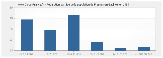 - Population de Fresnes-en-Saulnois de 30 à 44 ans : 51 habitants