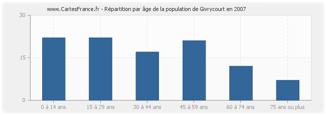 - Population de Givrycourt de 15 à 29 ans : 22 habitants