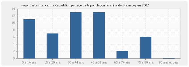 - Femmes de 45 à 59 ans habitant Grémecey : 13