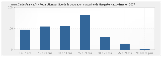 - Hommes de 45 à 59 ans habitant Hargarten-aux-Mines : 164