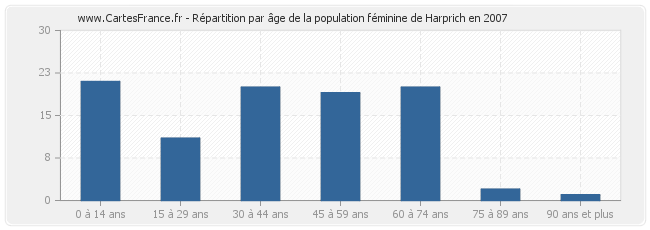 Répartition de la population féminine de Harprich par âge en 2007 :