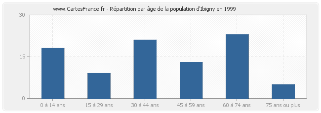 - Population d'Ibigny de 60 à 74 ans : 23 habitants