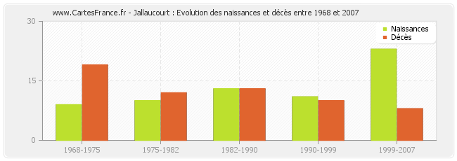 Jallaucourt : évolution des naissances et décès de 1968 à 2007