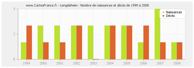 - Lengelsheim en 2008 : 1 naissances et 1 décès