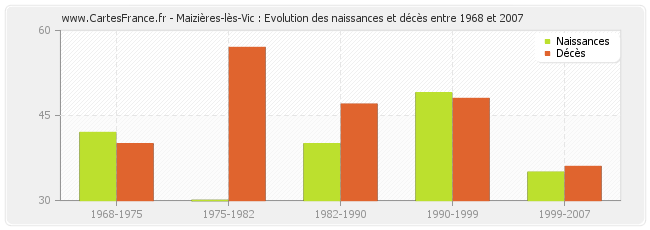Maizières-lès-Vic : évolution des naissances et décès de 1968 à 2007