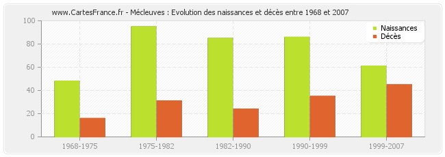 Mécleuves : évolution des naissances et décès de 1968 à 2007