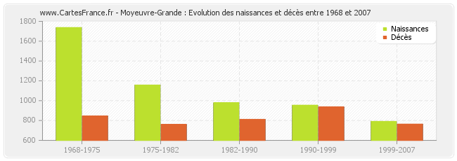 Moyeuvre-Grande : évolution des naissances et décès de 1968 à 2007