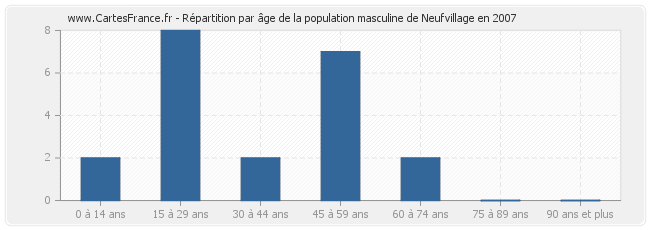 Répartition de la population masculine de Neufvillage par âge en 2007 :