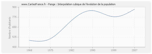 Cette courbe reprend l'historique de la population de Pange de 1968 à 2007 en interpolation cubique. Ceci permet d'obtenir plus précisément la population de la commune de Pange les années ou aucun recensement n'a été effectué.