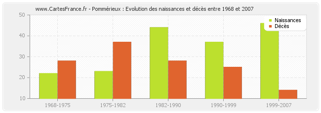 Pommérieux : évolution des naissances et décès de 1968 à 2007