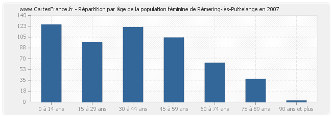 Répartition de la population féminine de Rémering-lès-Puttelange par âge en 2007 :