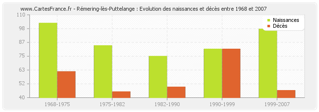 Rémering-lès-Puttelange : évolution des naissances et décès de 1968 à 2007