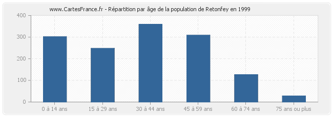 - Population de Retonfey de 30 à 44 ans : 359 habitants