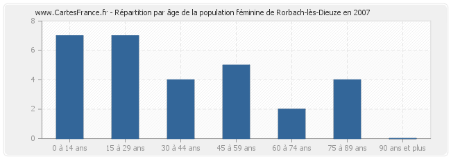 Répartition de la population féminine de Rorbach-lès-Dieuze par âge en 2007 :