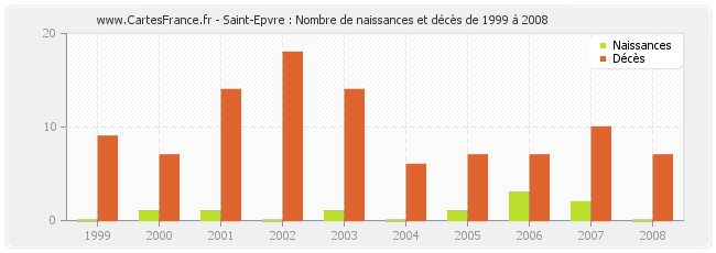 Saint-Epvre : évolution des naissances et décès de 1968 à 2007