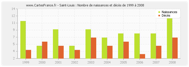 - Saint-Louis en 2008 : 13 naissances et 7 décès