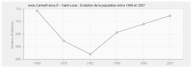 La population de Saint-Louis était de 706 habitants en 2007, 701 habitants en 1999, 696 habitants en 1990, 683 habitants en 1982, 691 habitants en 1975 et 709 habitants en 1968.