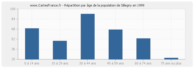 - Population de Sillegny de 75 ans ou plus : 20 habitants