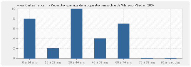 Répartition de la population masculine de Villers-sur-Nied par âge en 2007 :
