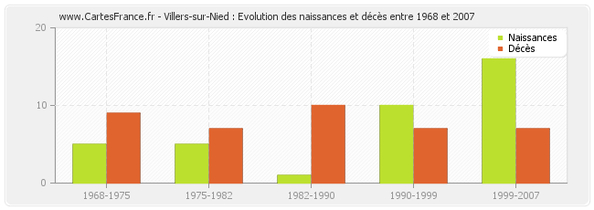 Villers-sur-Nied : évolution des naissances et décès de 1968 à 2007