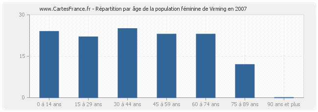 Répartition de la population féminine de Virming par âge en 2007 :