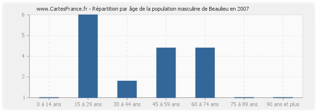 Répartition de la population masculine de Beaulieu par âge en 2007 :