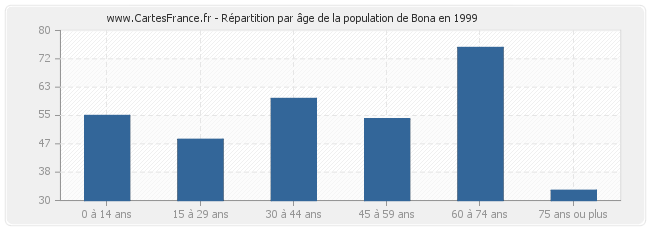 - Population de Bona de 60 à 74 ans : 75 habitants