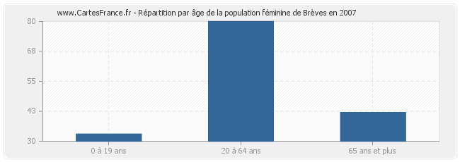 Répartition de la population féminine de Brèves par âge en 2007 :