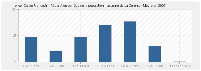 Répartition de la population masculine de La Celle-sur-Nièvre par âge en 2007 :