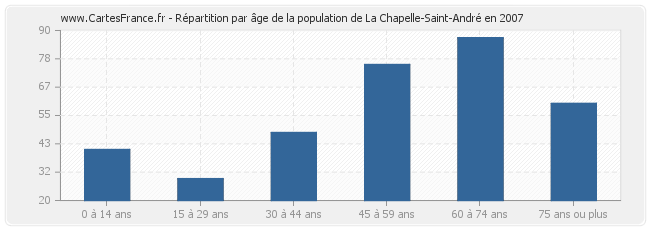 - Population de La Chapelle-Saint-André de 75 ans ou plus : 44 habitants