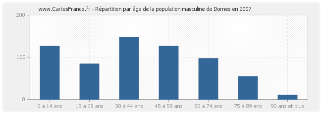 Répartition de la population masculine de Dornes par âge en 2007 :