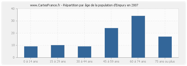 - Population d'Empury de 60 à 74 ans : 34 habitants
