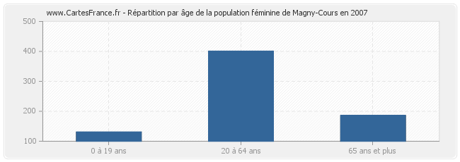 Répartition de la population féminine de Magny-Cours par âge en 2007 :