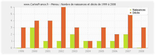 - De 1999 à 2007 : 10 naissances et 26 décès