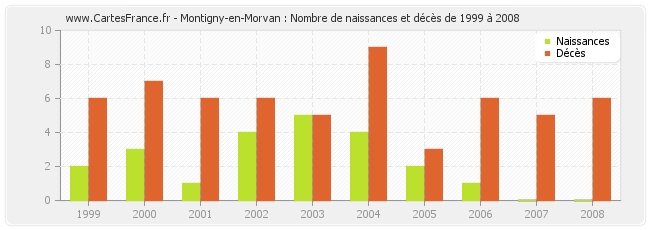 - Montigny-en-Morvan en 2008 : 0 naissances et 6 décès