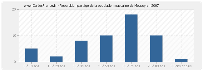 Répartition de la population masculine de Moussy par âge en 2007 :