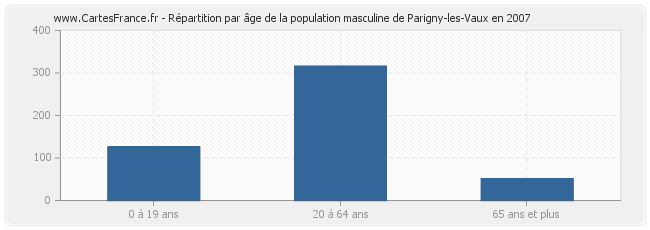 Répartition de la population masculine de Parigny-les-Vaux par âge en 2007 :