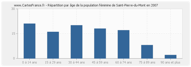 Répartition de la population féminine de Saint-Pierre-du-Mont par âge en 2007 :