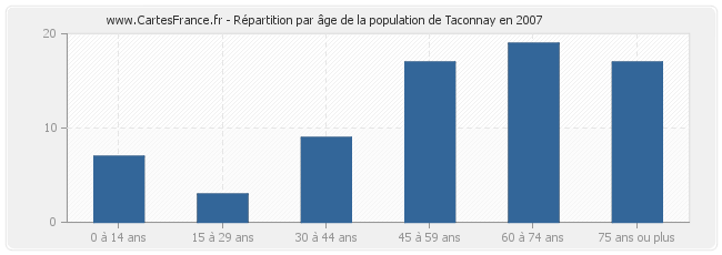 - Population de Taconnay de 60 à 74 ans : 19 habitants