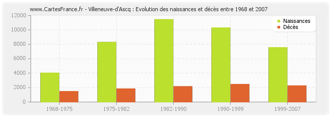 Villeneuve-d'Ascq : évolution des naissances et décès de 1968 à 2007